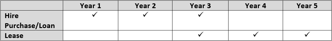 The choice between a lease and hire purchase/loan also depends on the type of vehicle and whether you will change it regularly. The more regularly (less than 2 years), the more likely a lease might apply.